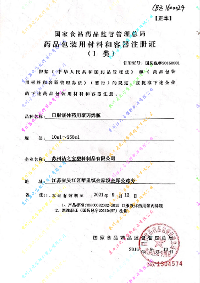 藥包材注冊證-PP瓶